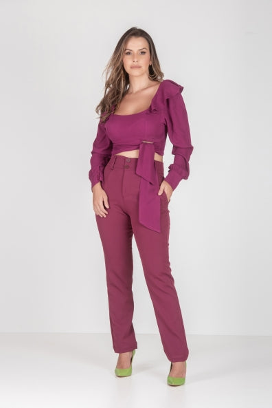 Calça e cropped em alfaiataria vinho - P